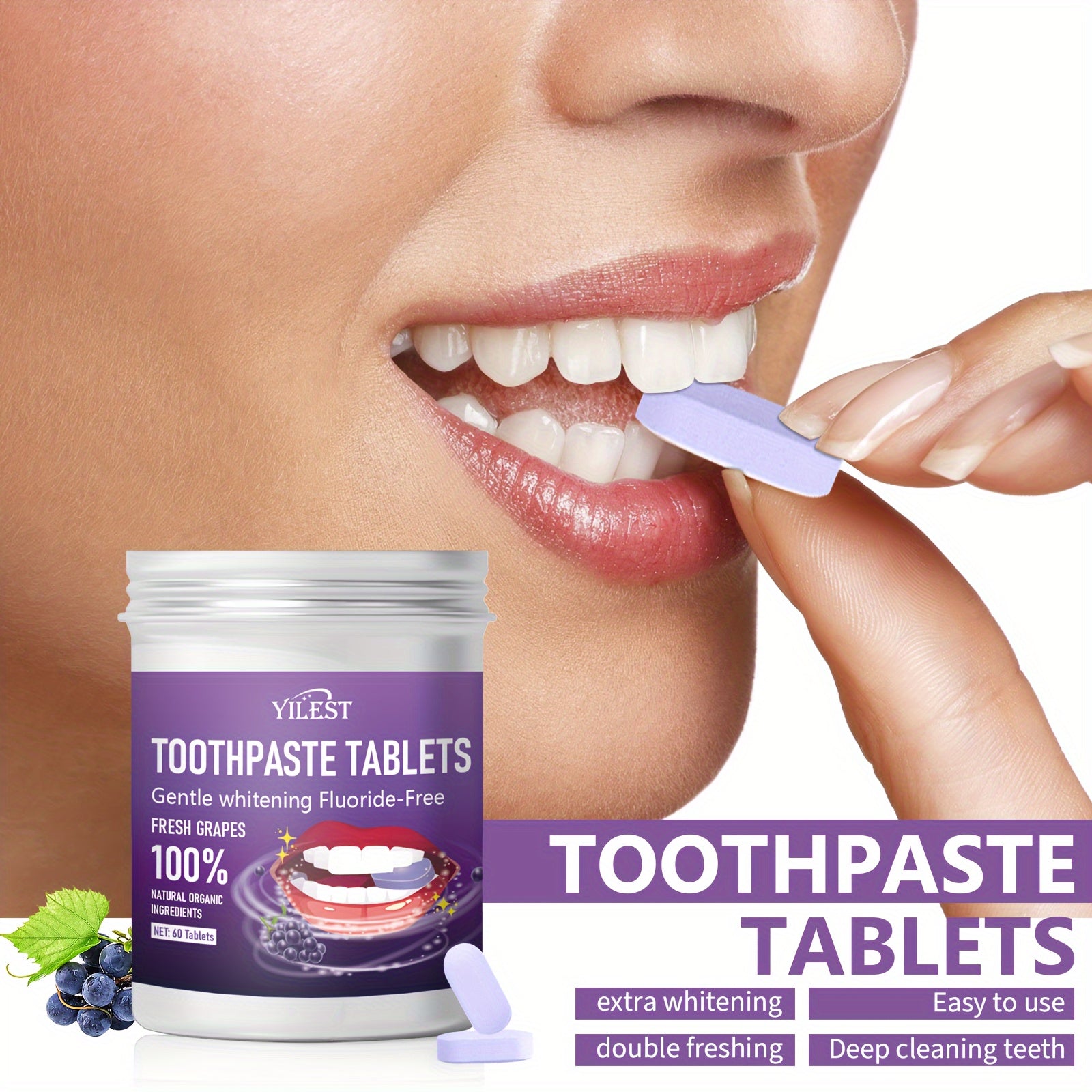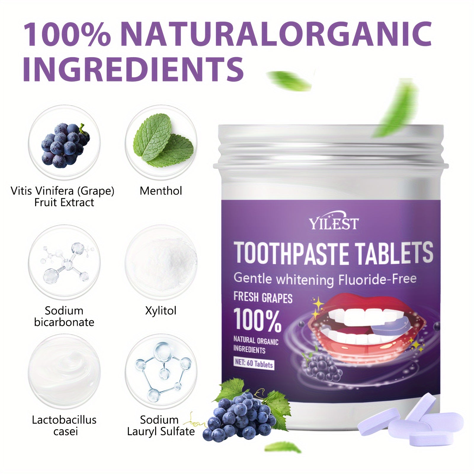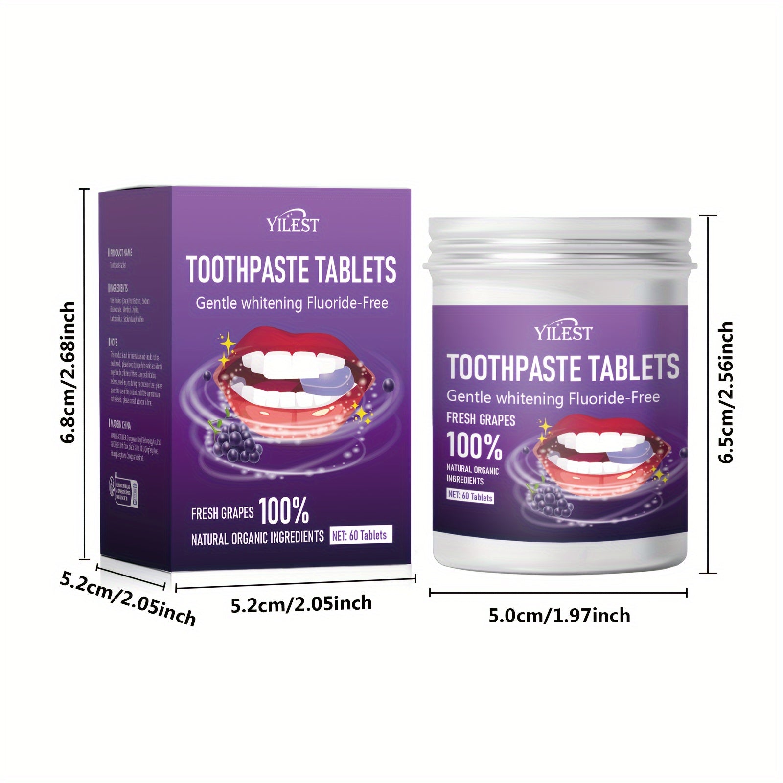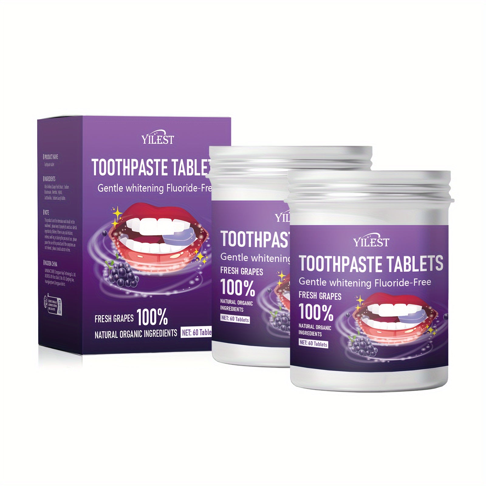 携帯に便利な2箱セット、合計240粒入りの旅行用ホワイトニング歯磨きタブレットです。フッ素フリーで安全に使え、ブドウフレーバーが楽しい歯磨きタイムに。