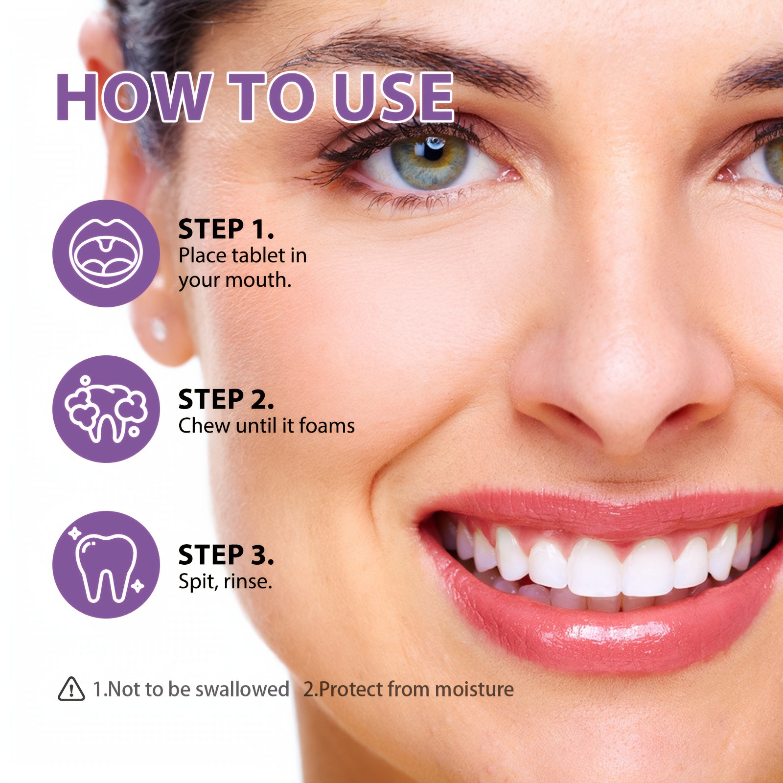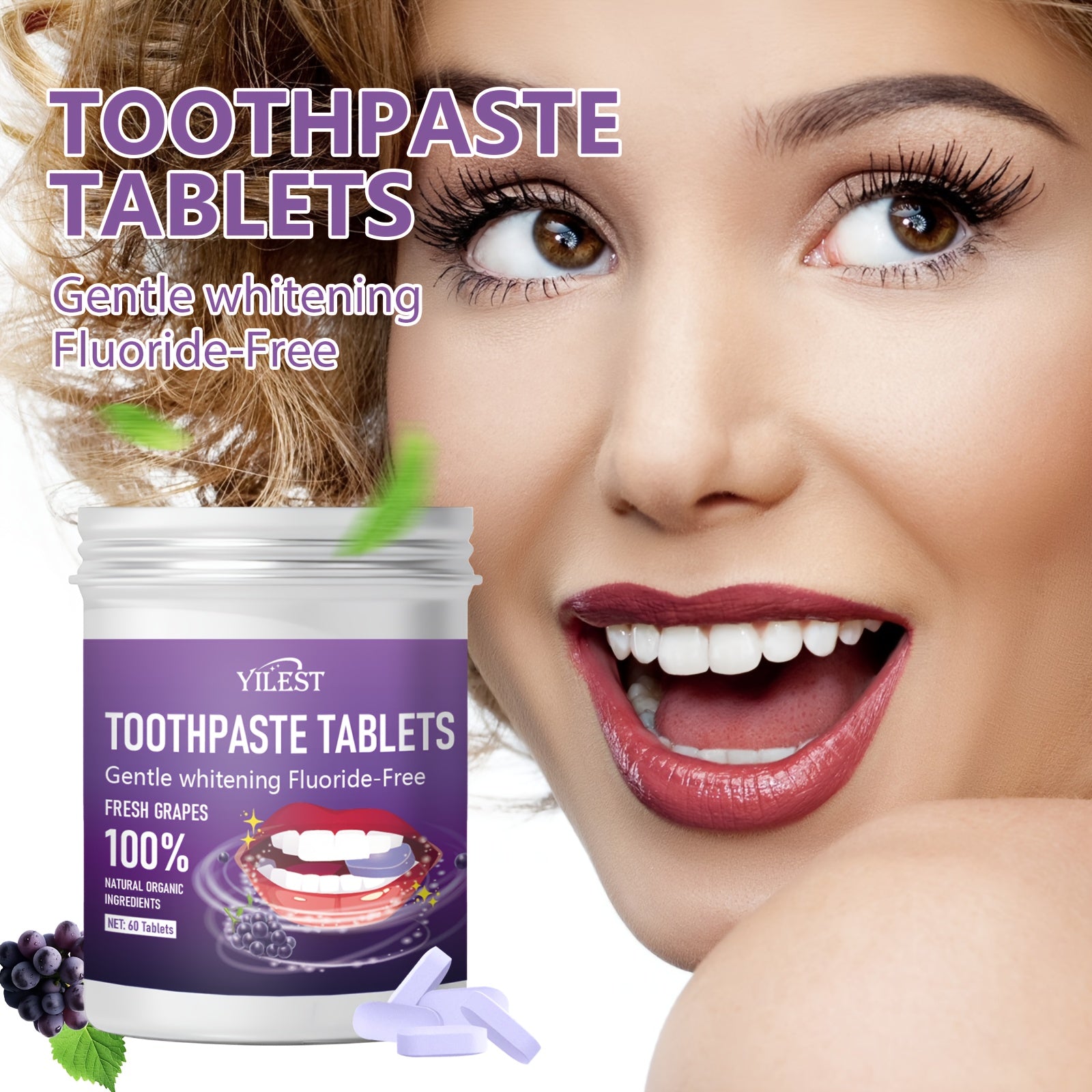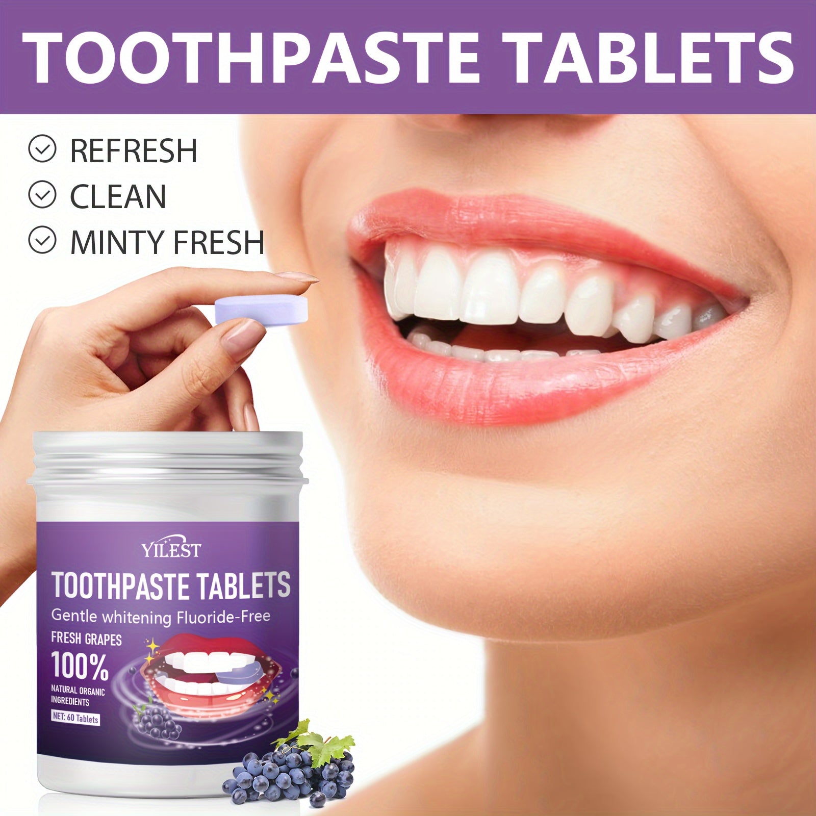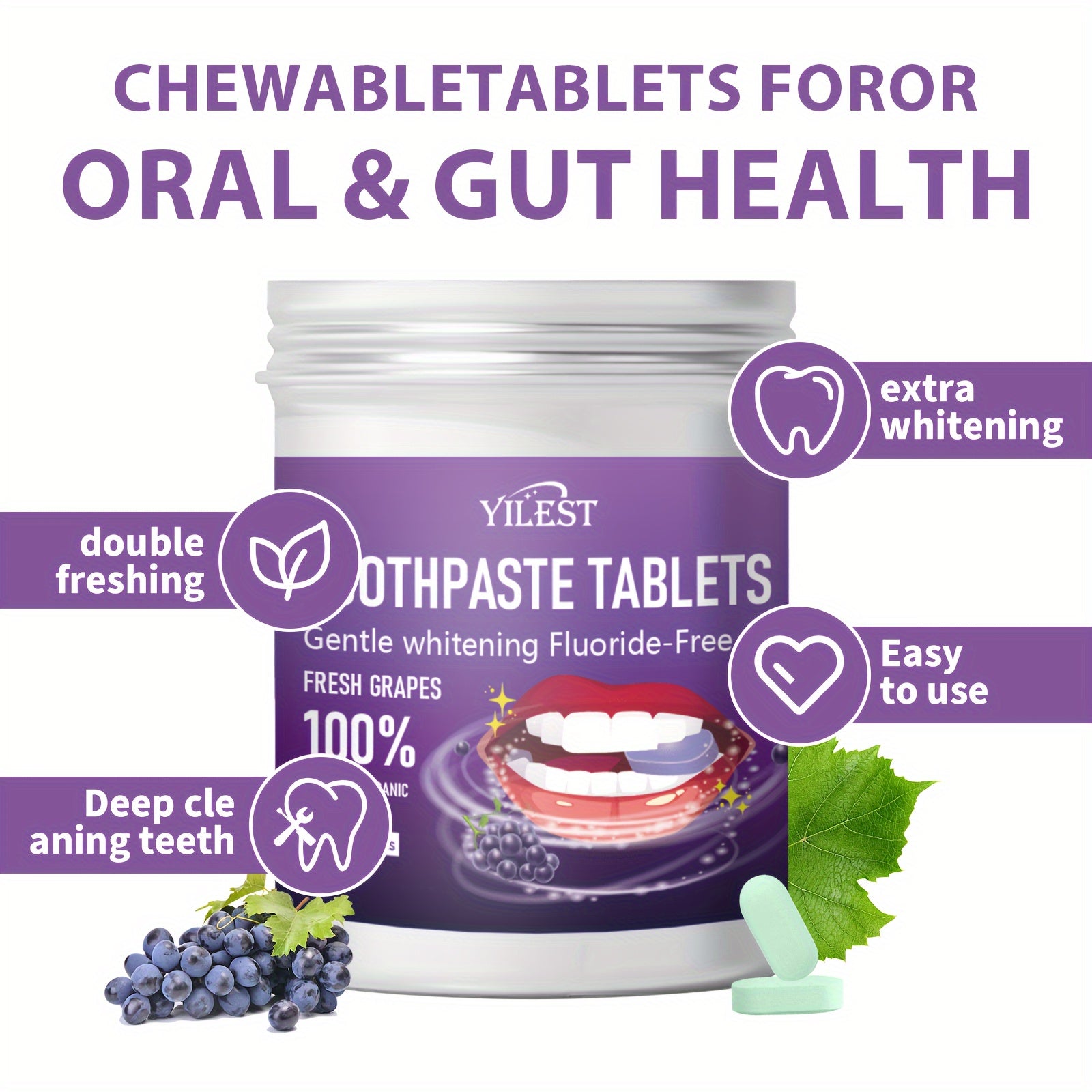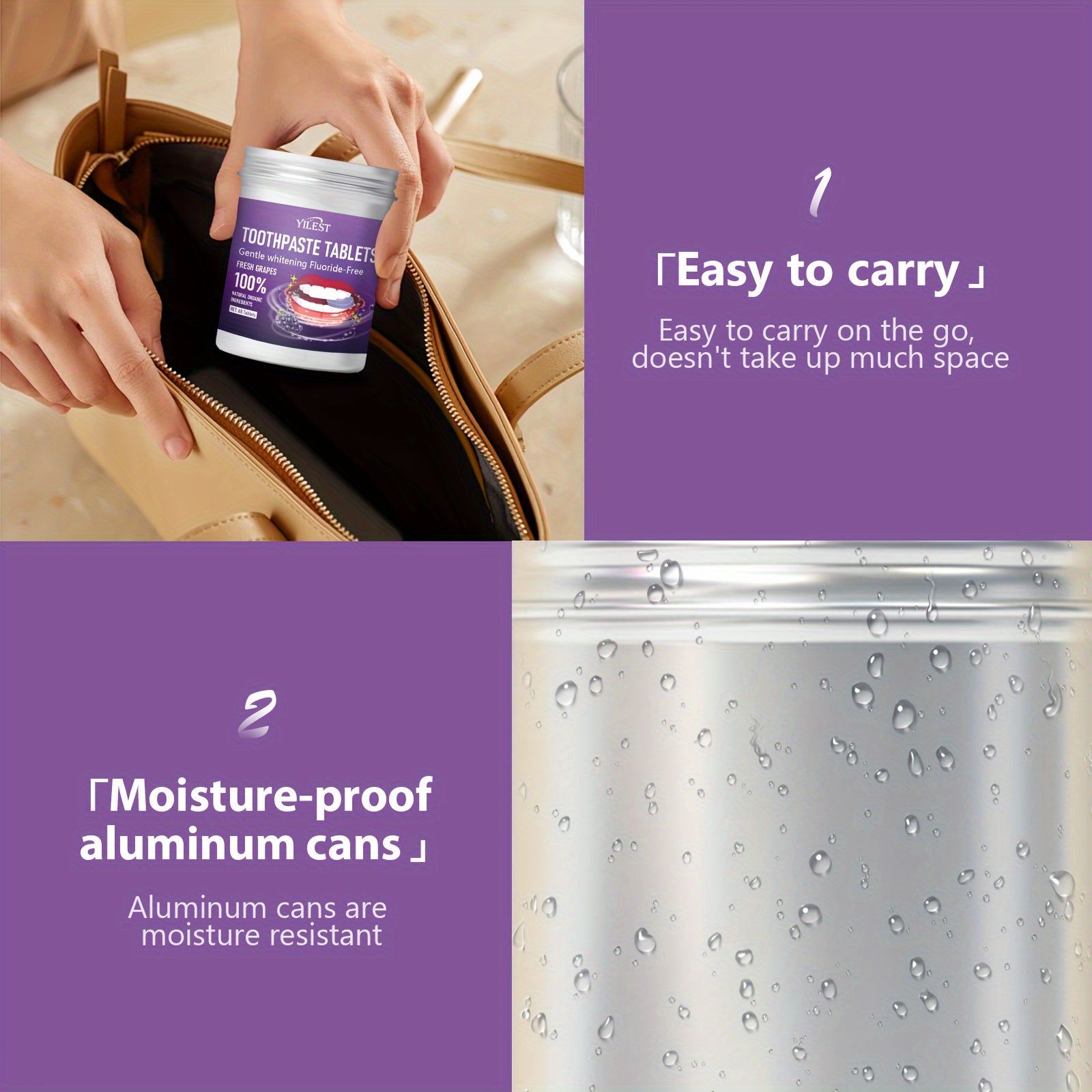 携帯に便利な2箱セット、合計240粒入りの旅行用ホワイトニング歯磨きタブレットです。フッ素フリーで安全に使え、ブドウフレーバーが楽しい歯磨きタイムに。