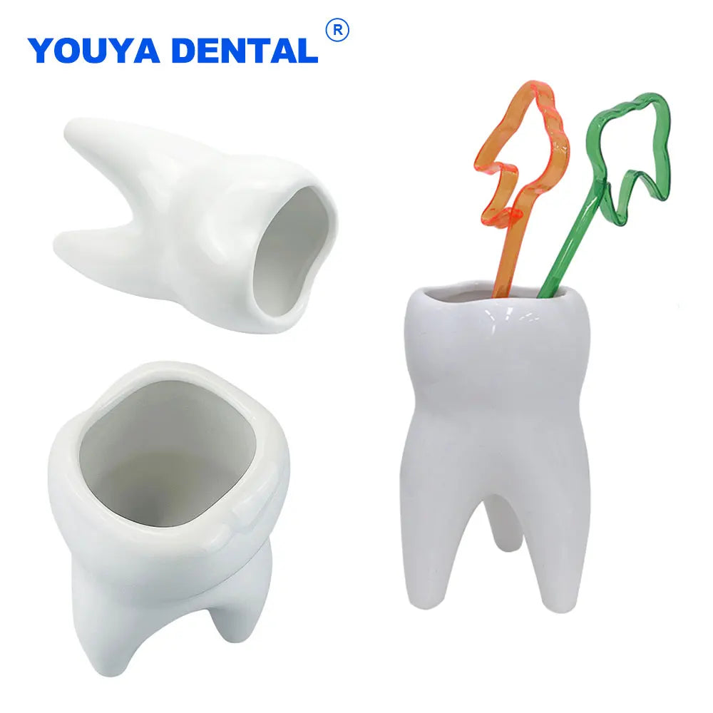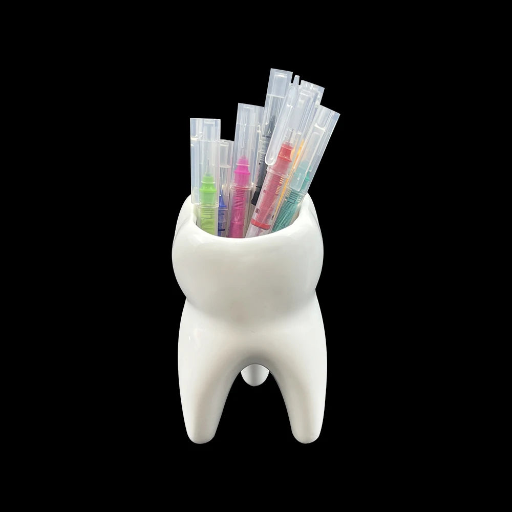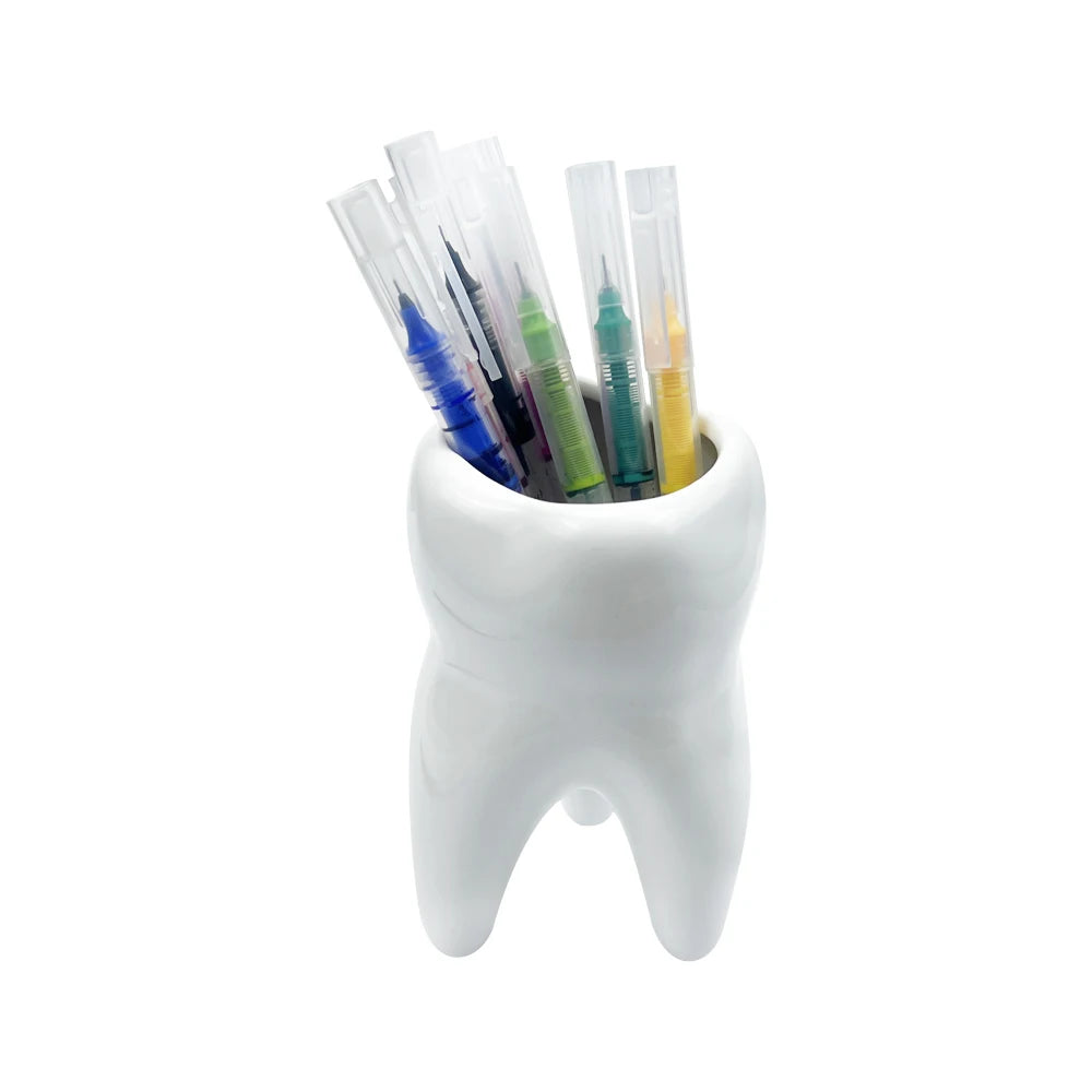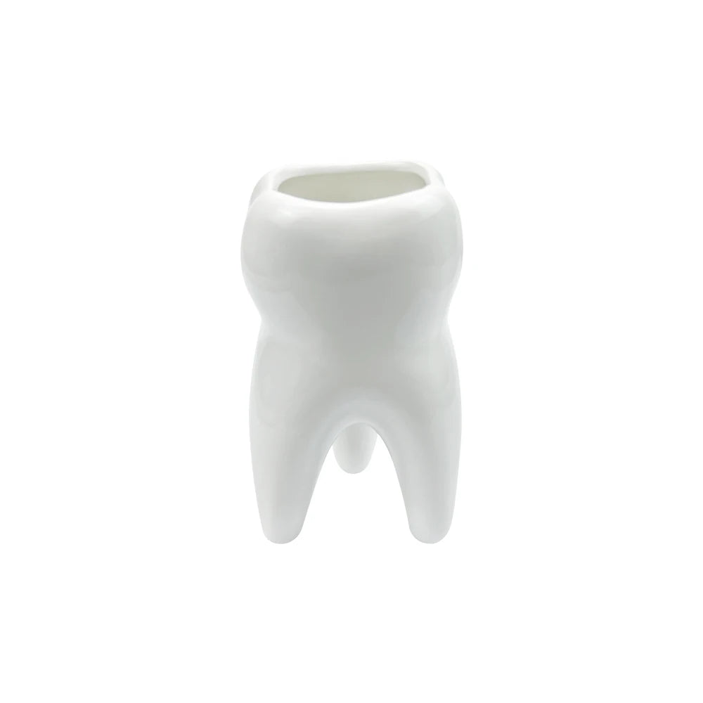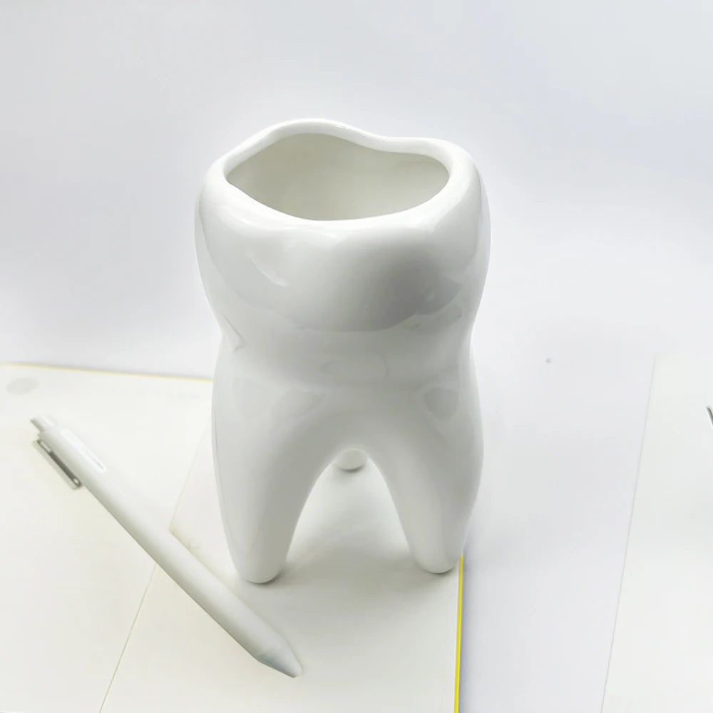 歯の形をモチーフにした、清潔感のあるホワイトセラミック製のペン立てです。