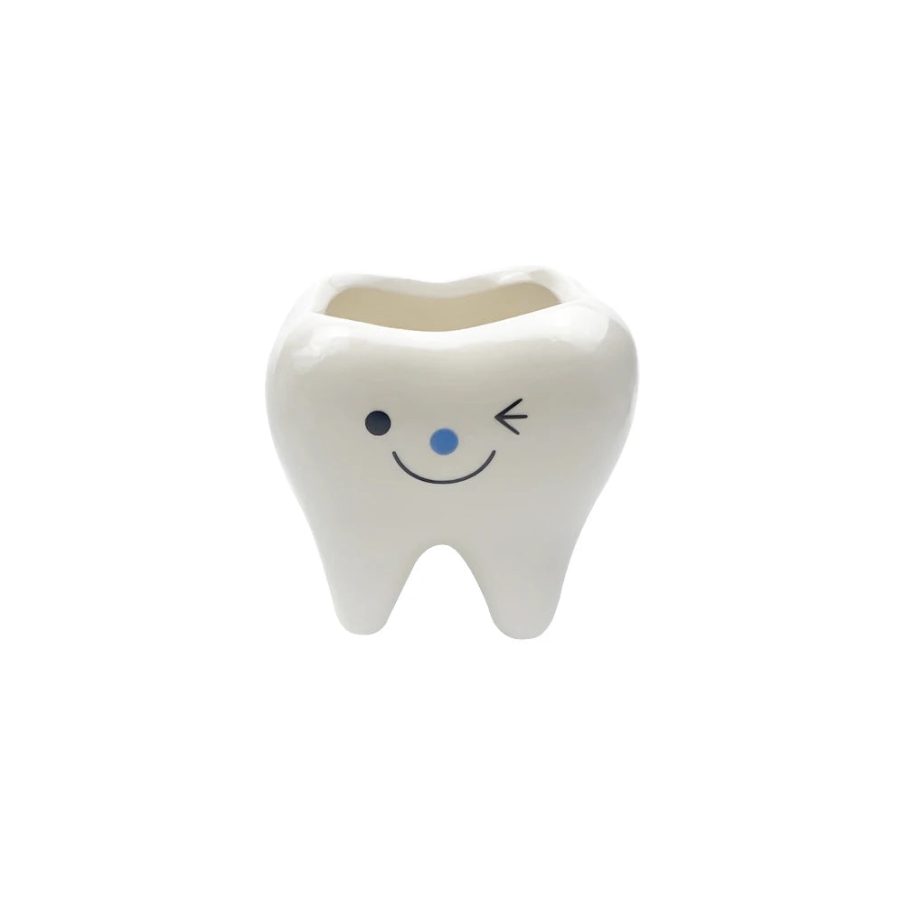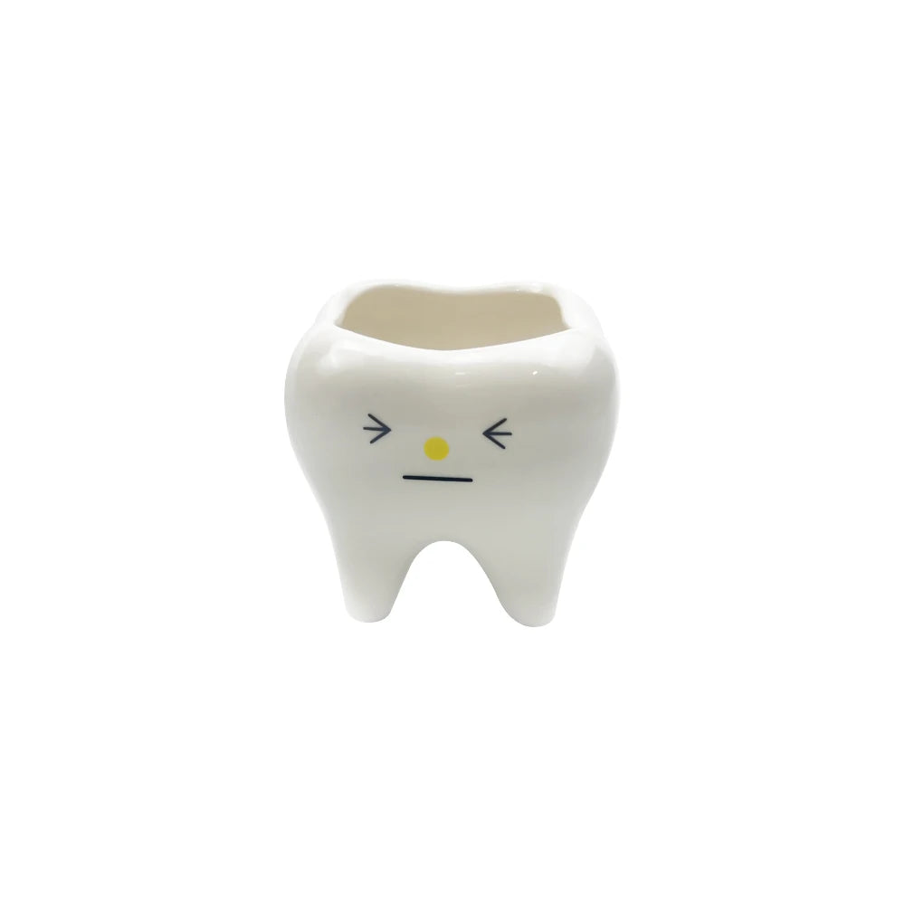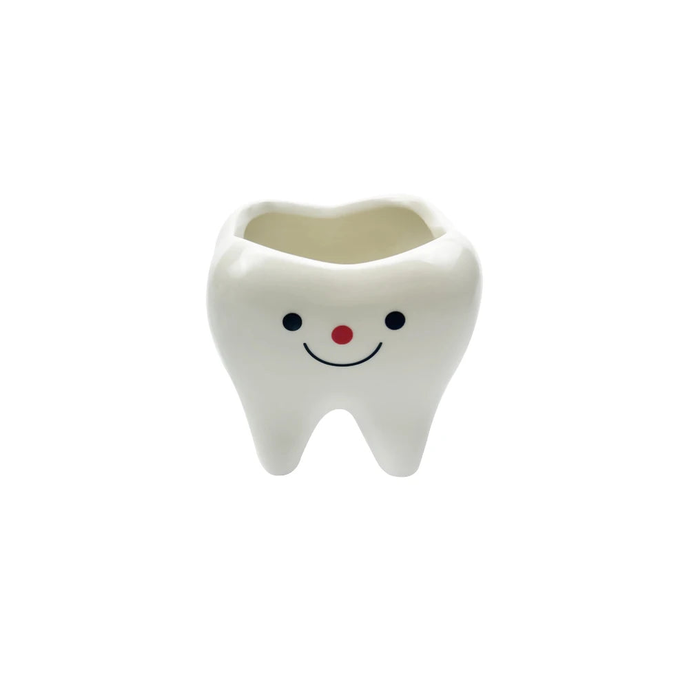 歯の形をモチーフにしたユニークなセラミック製フラワーベースです。清潔感のあるホワイトカラーと滑らかな質感が特徴で、デスクや棚に置くだけでインパクトのあるインテリアに仕上がります。観葉植物や小さな花を飾るのはもちろん、ペン立てや小物入れとしても活躍。