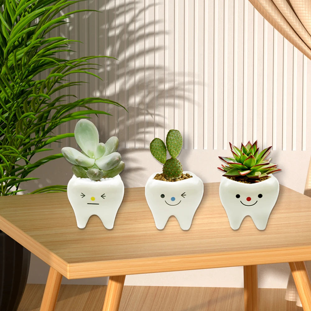 歯の形セラミックフラワーベース|デンタルギフト・観葉植物