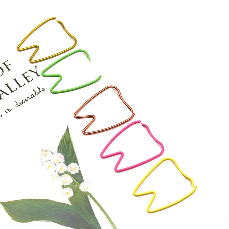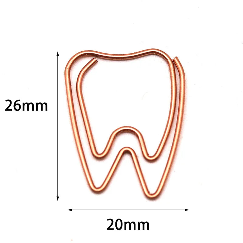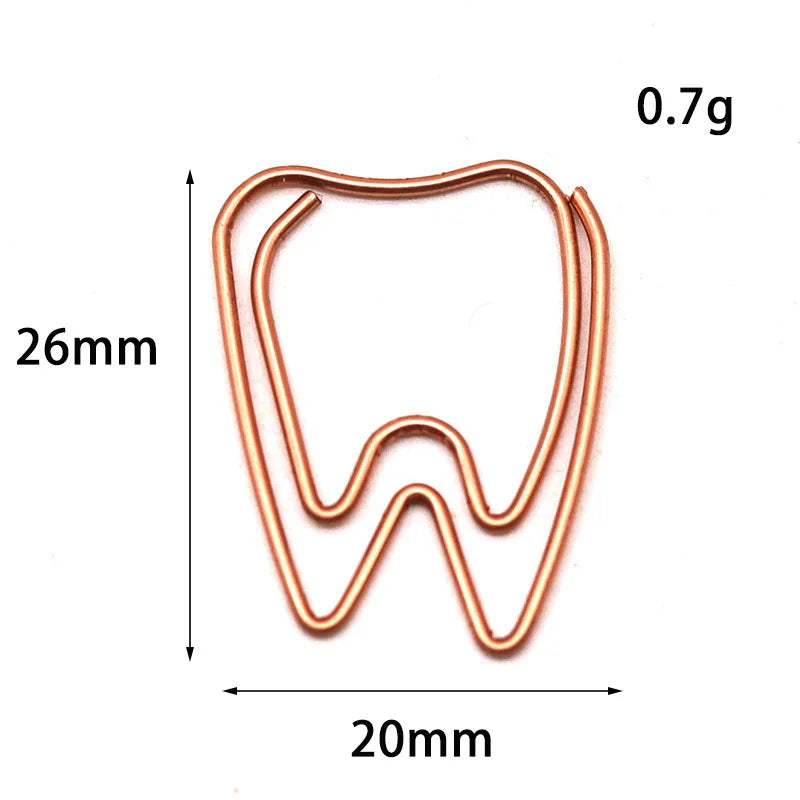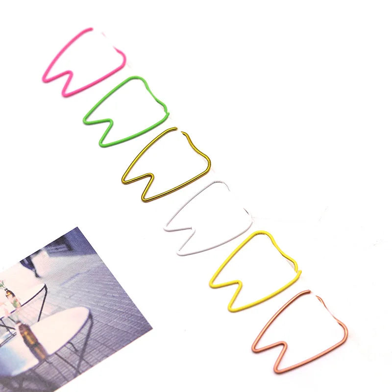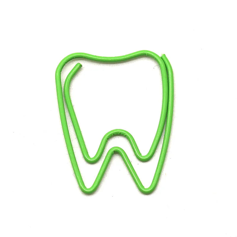 歯の形をモチーフにした可愛いペーパークリップ20個入りです。耐久性のあるスチール製にプラスチックコーティングを施しており、書類やファイルの整理に便利です。個性的なデザインで、デスク周りを楽しく彩りながら、書類の分類や固定に役立ちます。